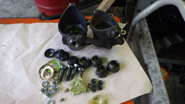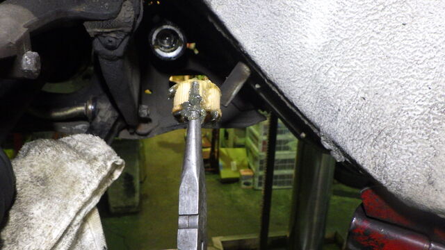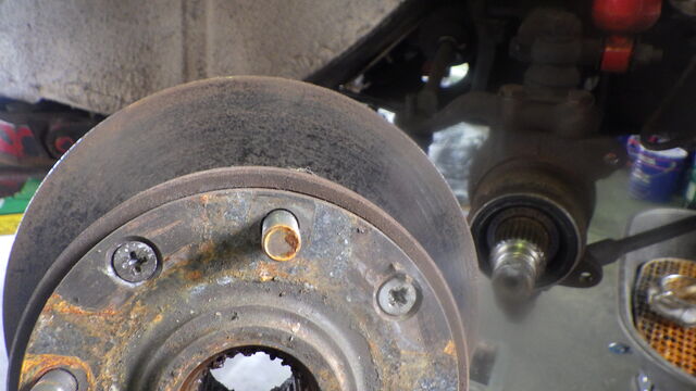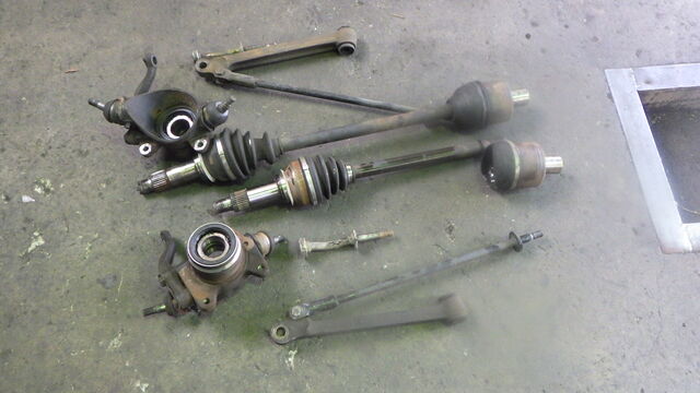ドライブシャフトを抜いて、テンションロッドとロアアームまで取り外しました。