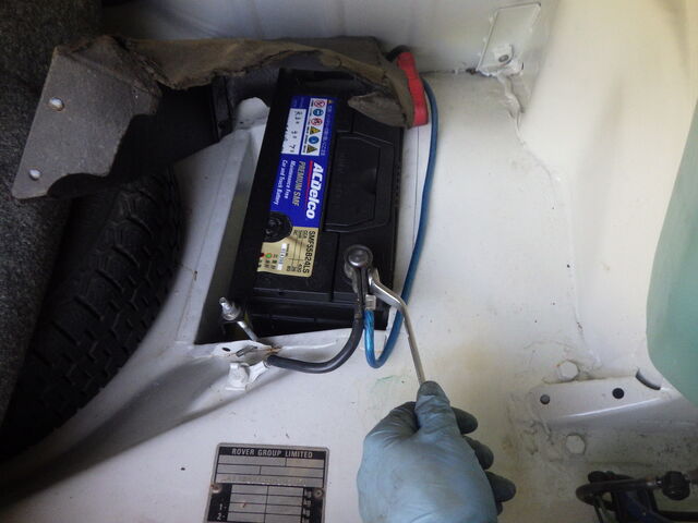 電装の作業を行うときはビリビリ防止のためにバッテリーから端子を外して電気をストップします。