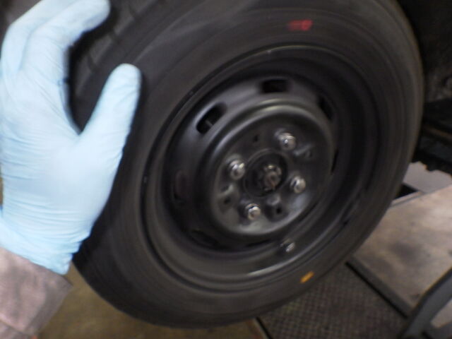 戻ってきて左前輪を手で回してみるとやはり音がしますね