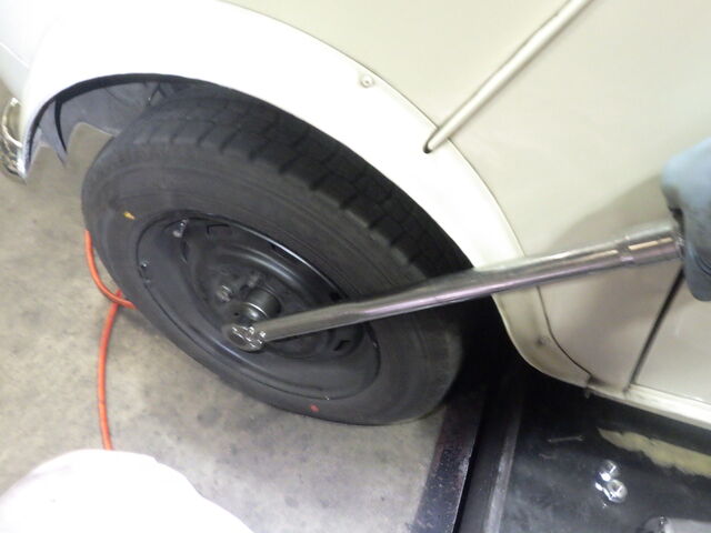足回りを組戻したらトルクレンチでカチン!しっかり締め込みハブベアリングの交換完了です。