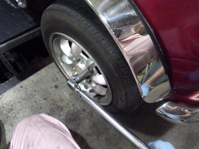 ホイールを取り付けたらホイールナットをトルクレンチでカチン!ブレーキドラムの交換完了です。