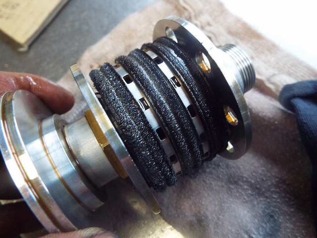 前回のオーバーホールで使用したブレーキバンドには縦スリッドがはいっているものでしたので