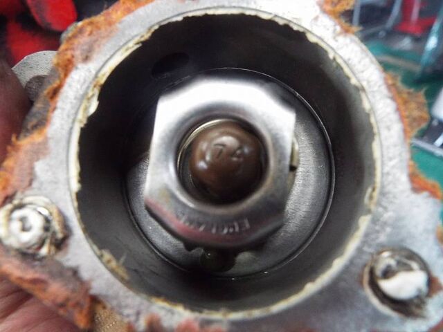 サーモスタットは74℃のものが入ってました・・・