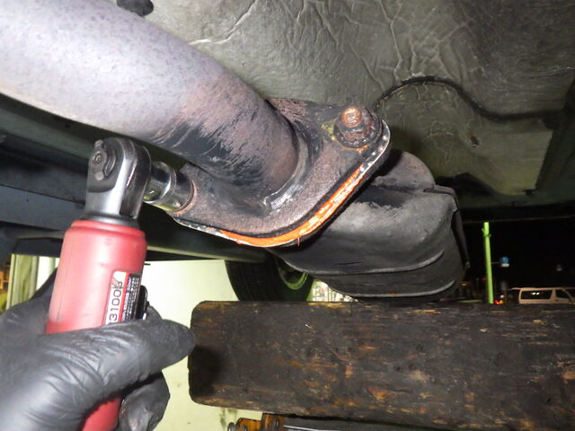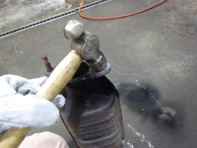 マフラーを取り外すために、触媒のボルトを外します、、、