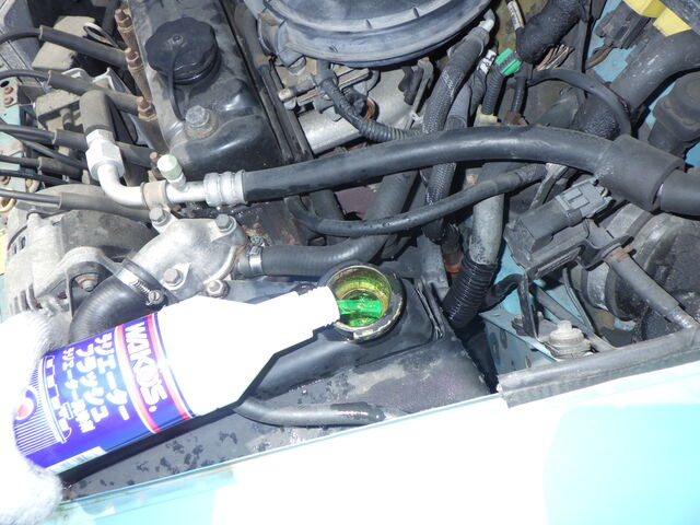 ラジエターフラッシュを注入してエンジンを始動します。