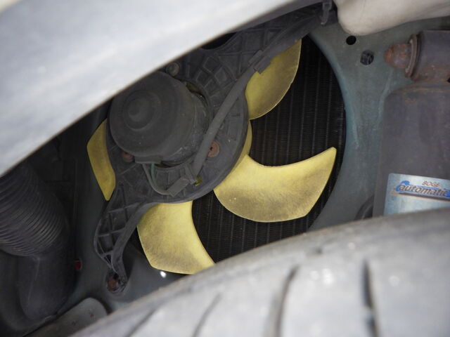 ラジエーター下部にLLCの滲み跡あります。
