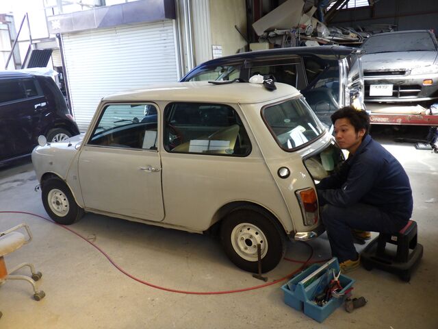 マニュアル車ご希望とのことで商品車の中から色々見ていただいた結果、こちらのベージュの MINI でご成約いただきました、ありがとうございます。