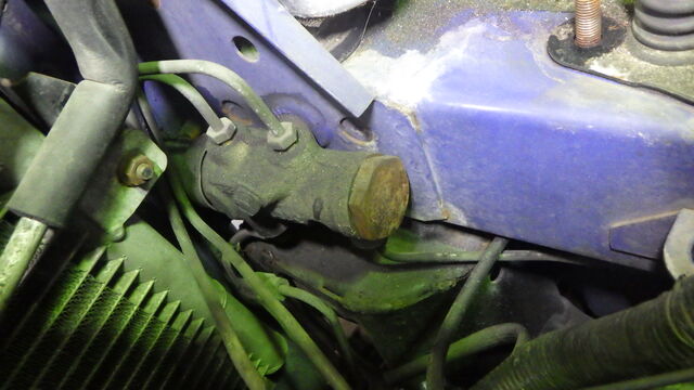 右のフェンダー内にフルード漏れの痕跡。
