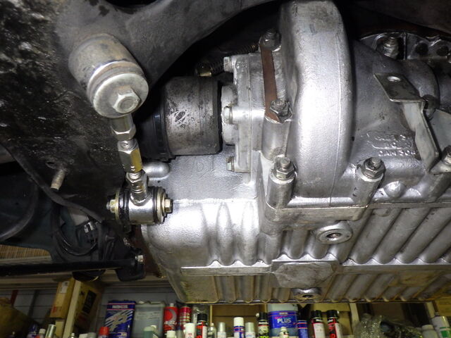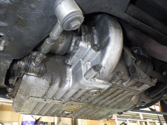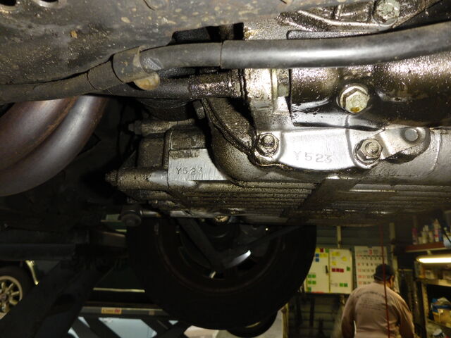 ミッションケースは漏れたオイルに汚れが付着してます・・