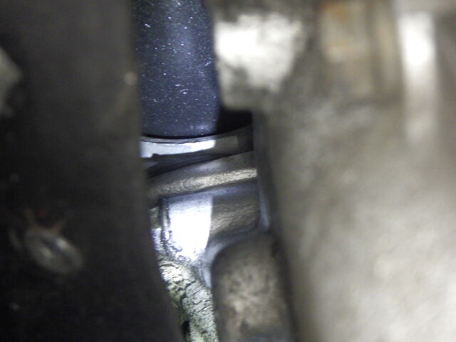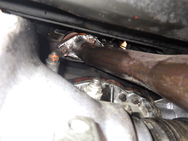 左ドライブシャフトの奥からの漏れはキックダウンコントロールレバーからです。