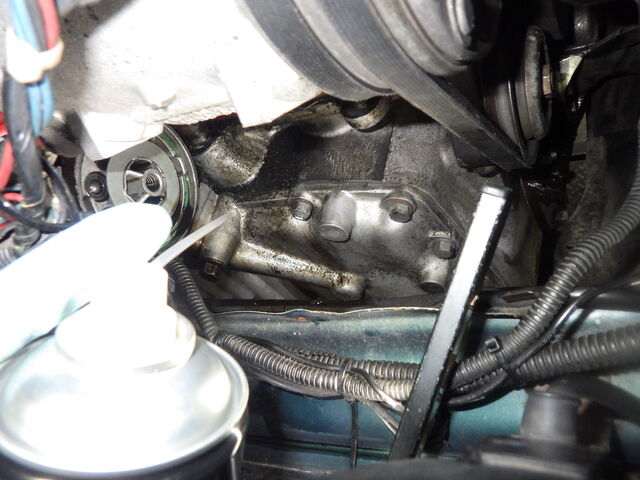 まず、オイル滲みはタイミングカバー側に少しあります。