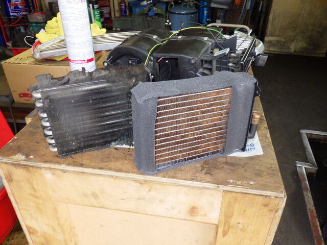 新旧交換の儀。新しいヒーターコアは国産のものを使用します。