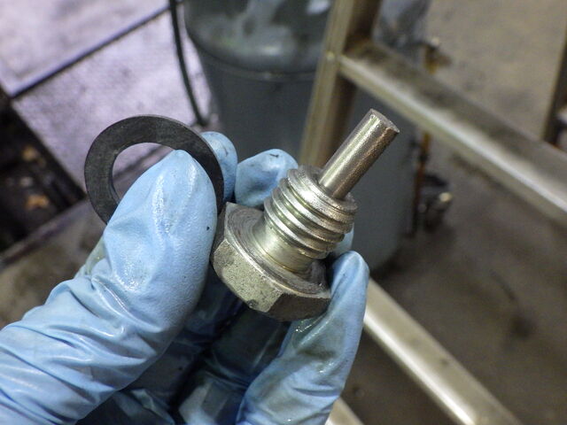ドレンボルトのねじ山が固くなっていたので、タップ立てておきました。