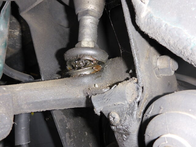 左のナックルジョイントも樹脂カップは飛び出し、ボール部分のグリスも汚れまみれになってます。