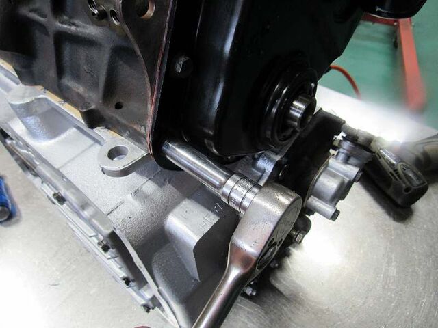 積む前にセルモーターでオイルを汲み上げておきます