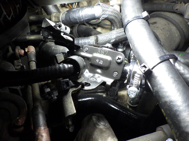 エアコンの修理はできないため、エンジンルームにバルブを付けます。