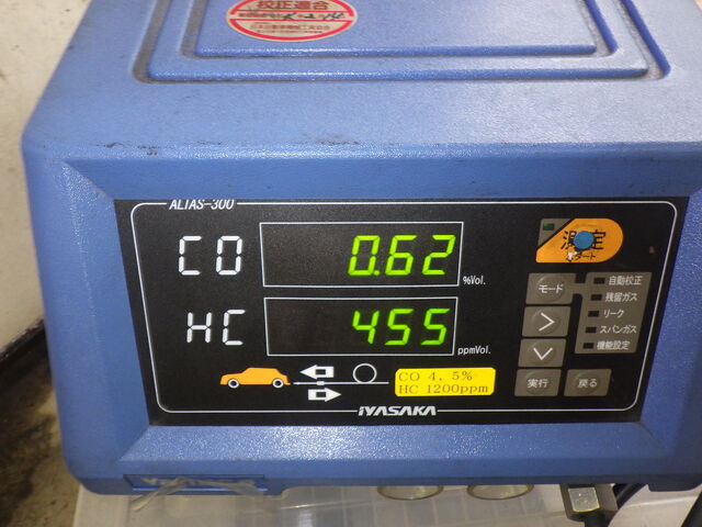 どちらの数値も下がりました。COは規制値ないですが、HCがオーバーしてしまっています。。。