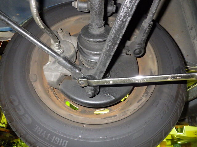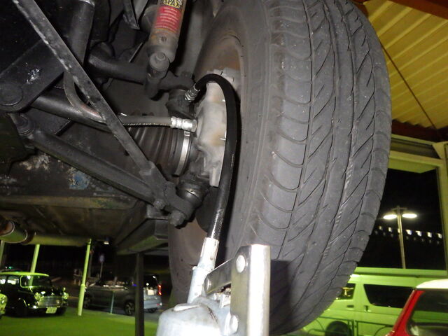 足回りのガタのチェックでは、右前輪のタイロッドに大きなガタがあります。
