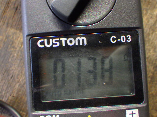 そこで、リレー部分のギボシと配線の抵抗を測定してみると13.8Ωありました。
