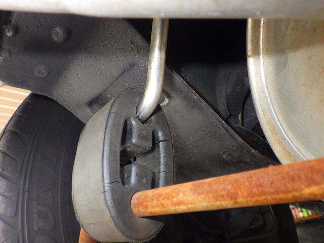 続いて、マフラーの吊りゴムに多くのクラックが入っていたので交換していきます。