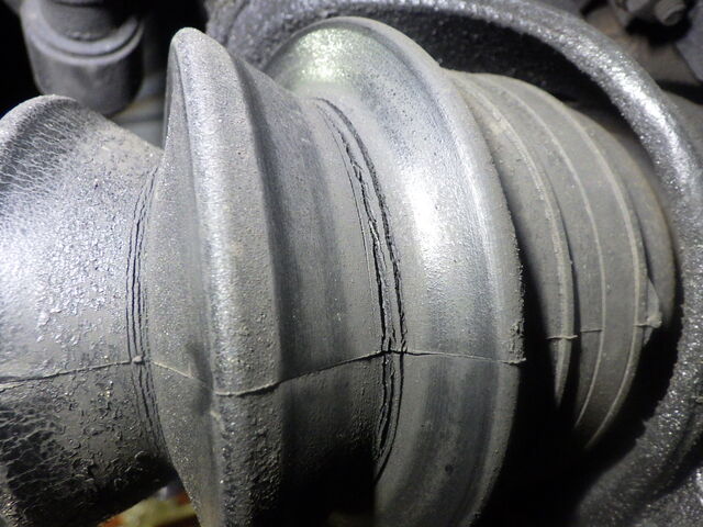 右のドライブシャフトアウターブーツに深いクラック入っています。