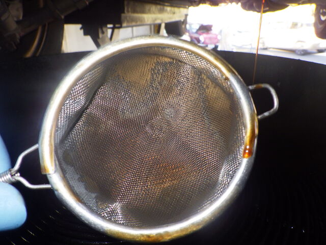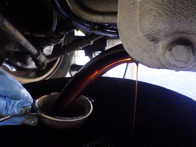 オイル交換のためオイルを抜いていきます。オイルの色は褐色でした。