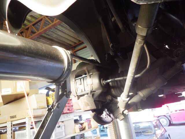 ボールジョイントと右のタイロッド付近に少しガタあります。