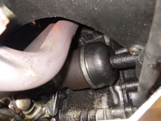 今は漏れていませんがヒーターの下が白くなっており過去にクーラントが漏れていたようです。。。