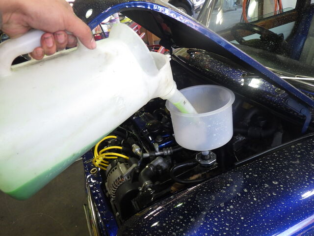 水路洗浄完了です。クーラントなどの補充は電動ファンスイッチ交換後に行います。