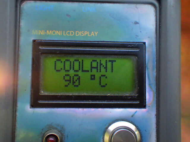 ラジエーター側の温度計と、エンジン側の水温センサーにしっかりと差があります。サーモスタットの閉じは良いですね。
