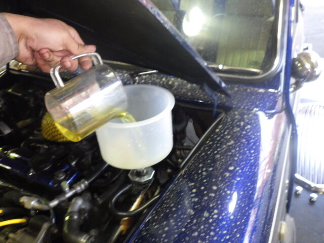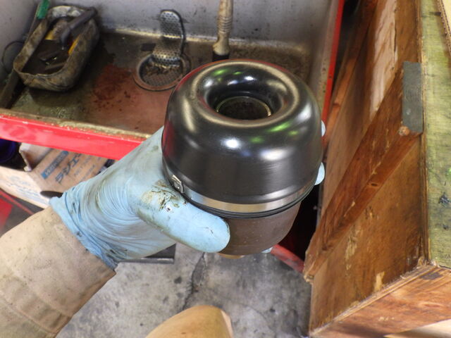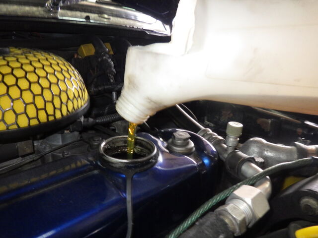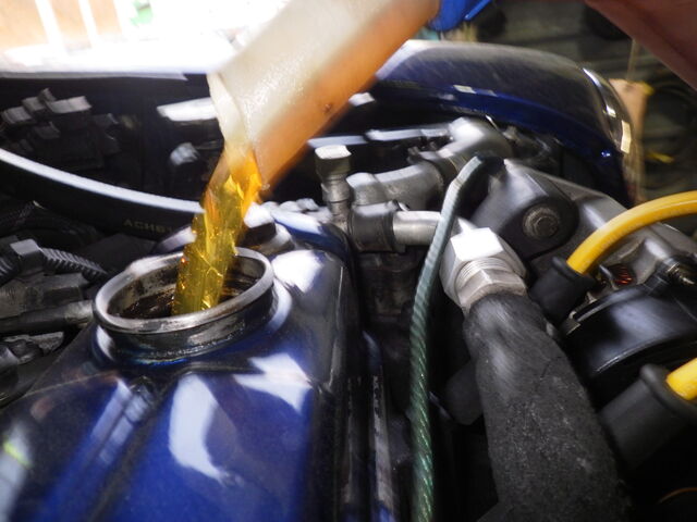 オイル交換も追加で行なっていきます。抜いたオイルの色は褐色でした。
