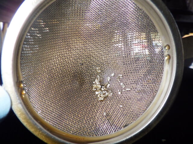 茶こしの異物は、金属片。ドレンボルトの磁石にくっつかないのでアルミ片ですね。