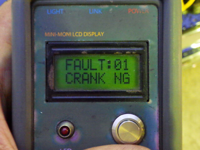 ミニモニチェック。エラーコードを記録するフォルトは今回もクランクセンサーが記録されていました。