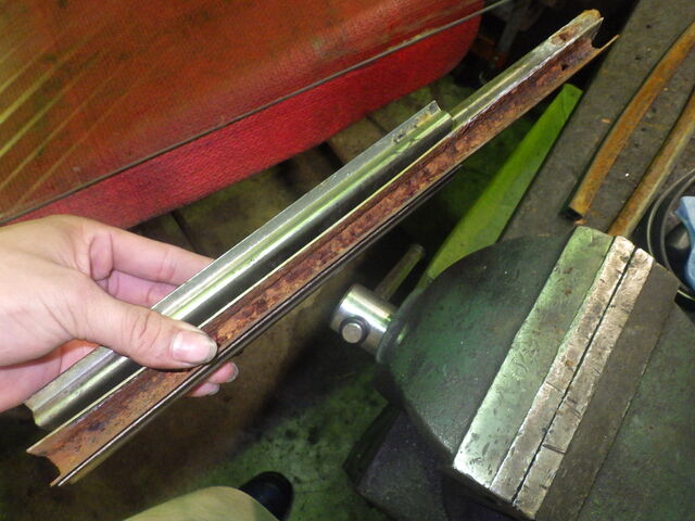 チャンネル部分を取り外してみると、中は完全に錆びついて朽ちてきていました。
