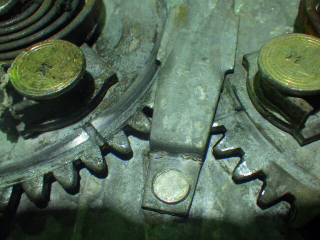 外して確認してみると、かみ合っているギヤの部分のアイマークがずれてしまっています。