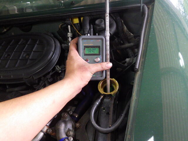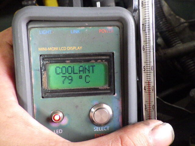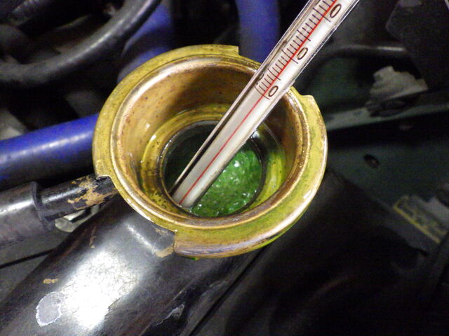 しばらくしてラジエーターに勢いよくクーラントが流れ込んできました。サーモスタット開弁は良好、開く温度も規定温度です。