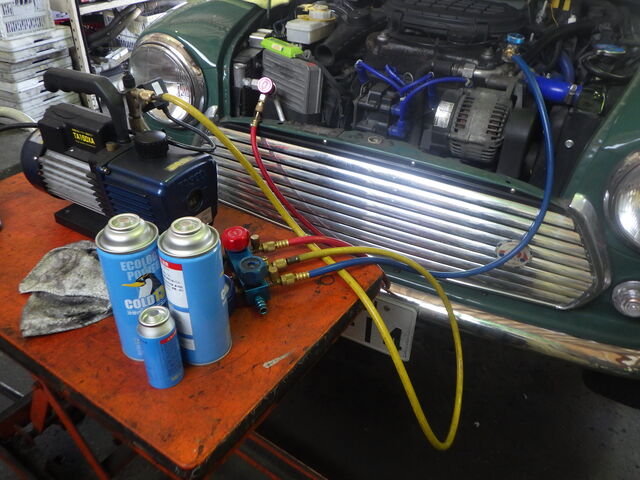 クーラーラインの真空引きしてからガスチャージ。。