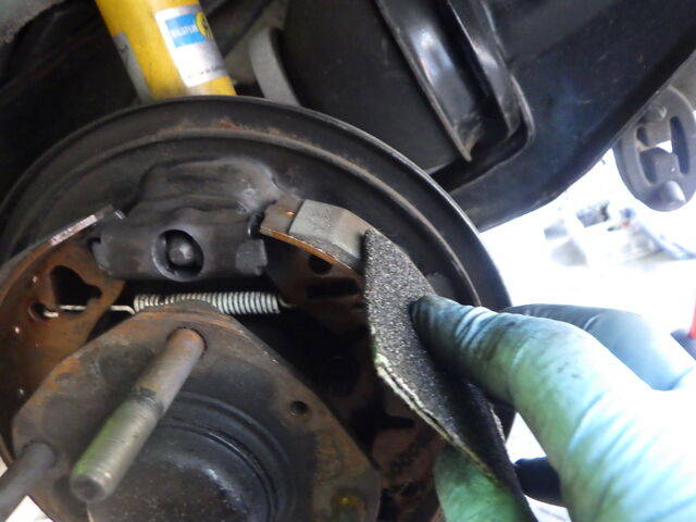 リヤブレーキもライニングの残量は十分なので面取りしてクリーニングします。