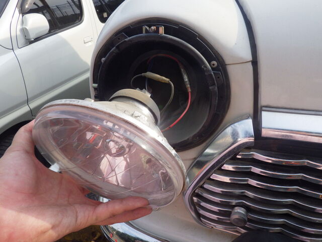 車検用のヘッドライトに交換します。