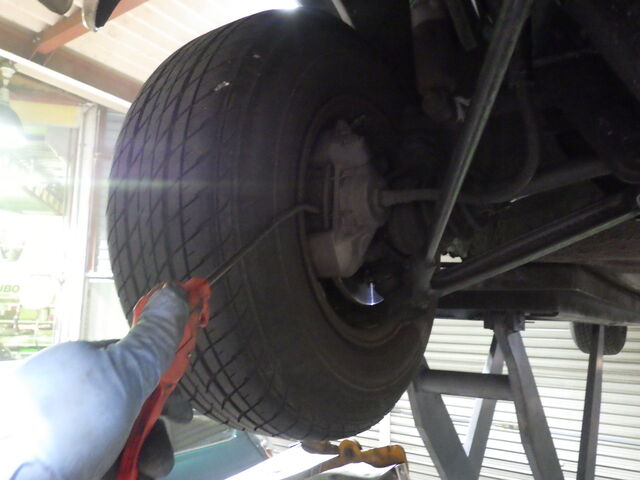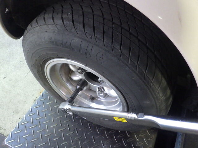 右の後ろのタイヤは仮止めです。不良のボルトは黄色でペイントして有ります。