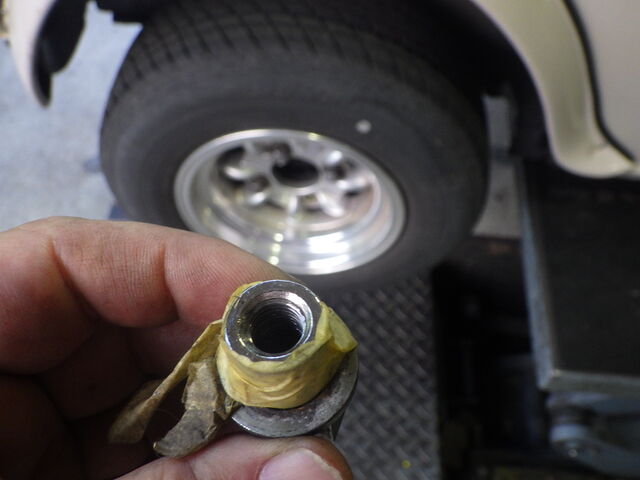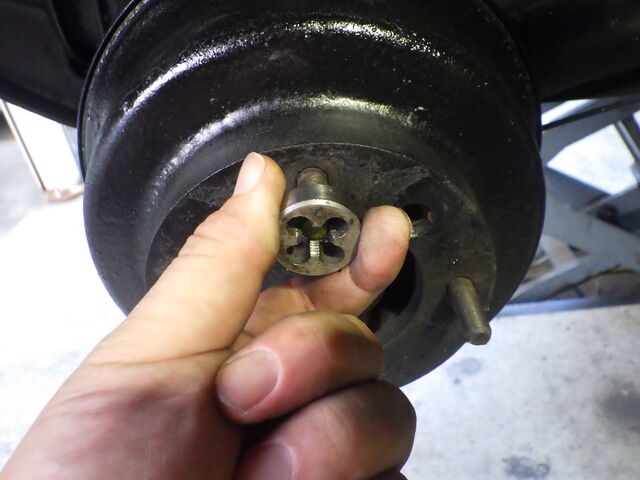 タイヤを戻しましたが右後ろのハブボルト1本ねじ山が不良です。