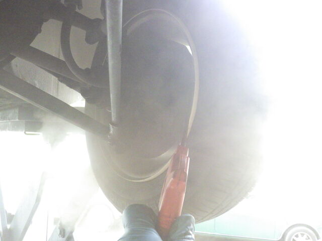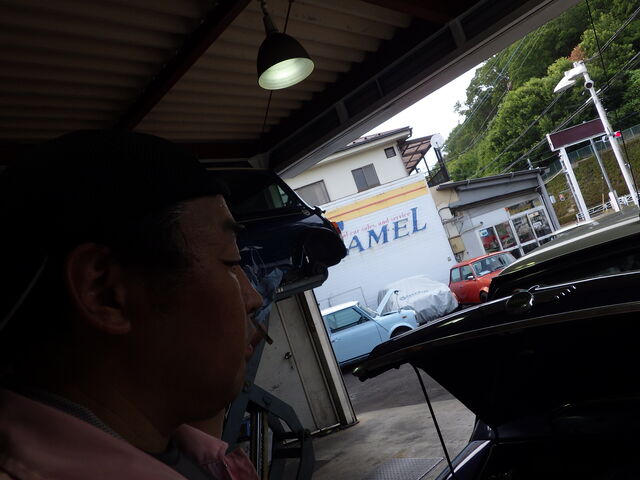 リヤシートにタイヤ置いておくのでエア漏れの修理もよろしく・・とのことです。