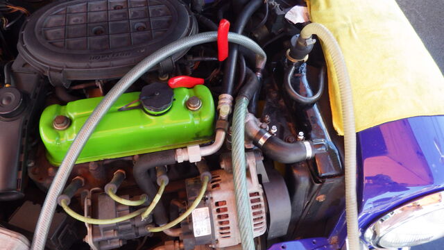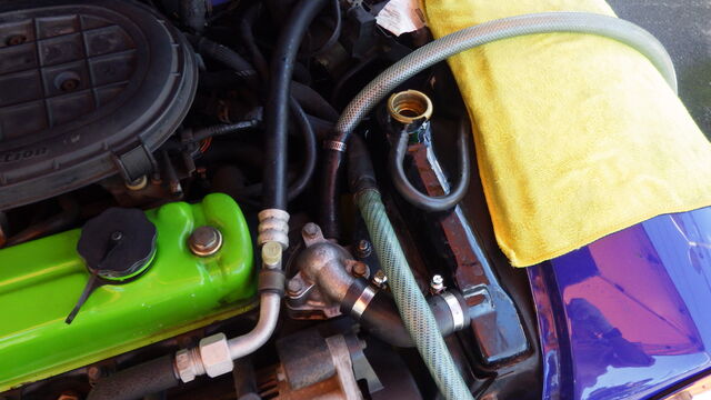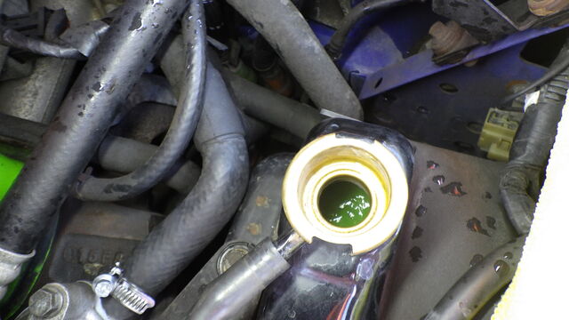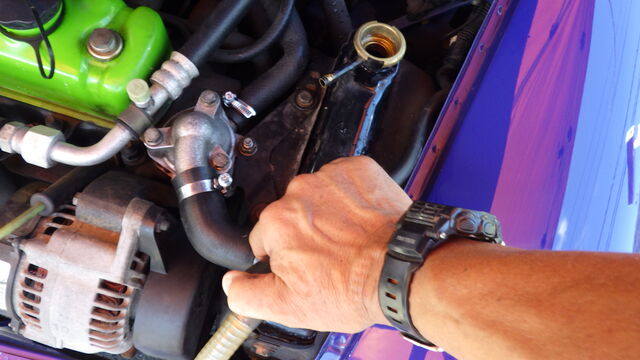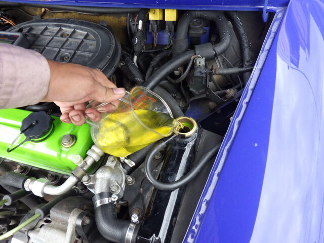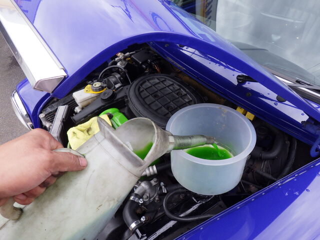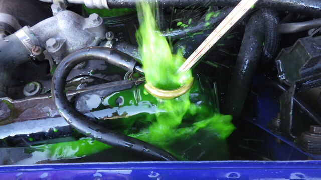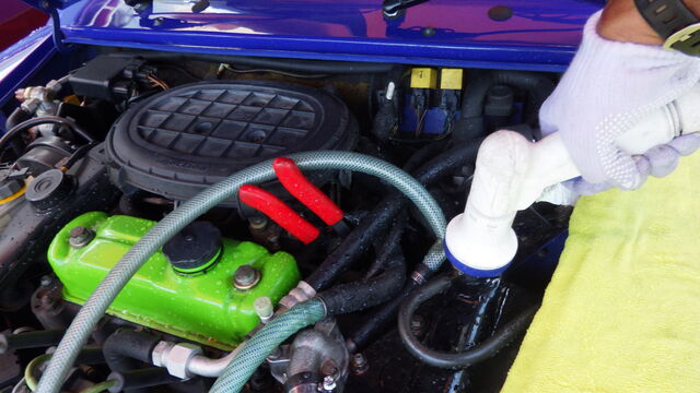 ラジエーターに洗浄剤を入れてエンジンを始動します。