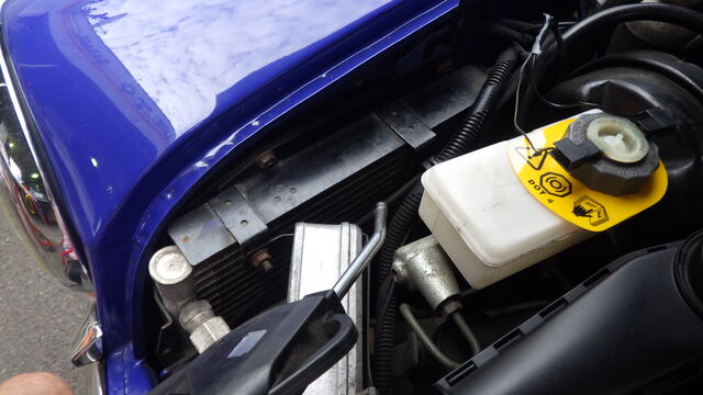 正常ならばラジエーターの上側から出るはずですがエンジンの下側から吹くようです。