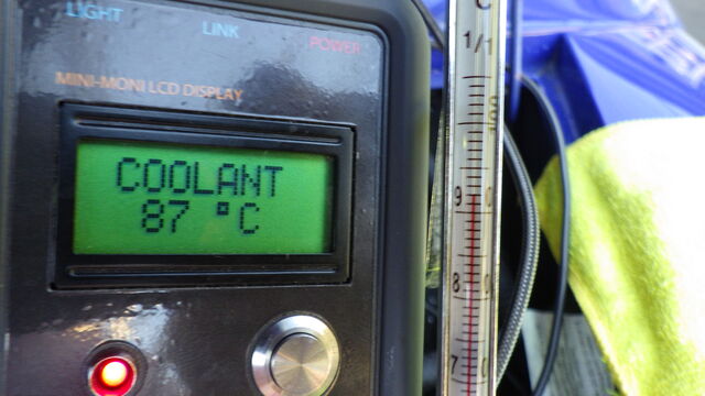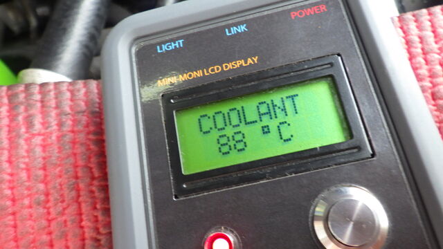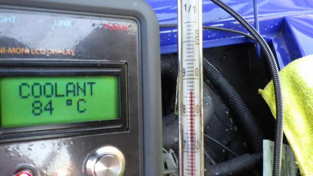 実際のエンジン冷却水の温度計る温度計は86度Cです。