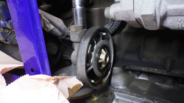 「漏れないオイルフィルターケース」を取り付けオイル交換します。