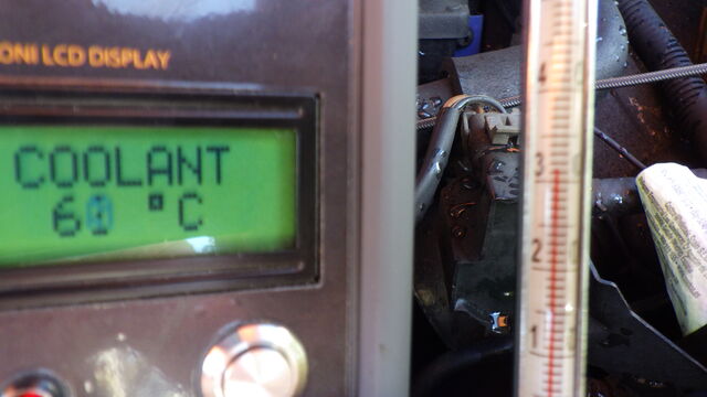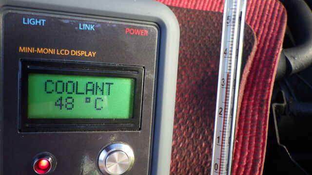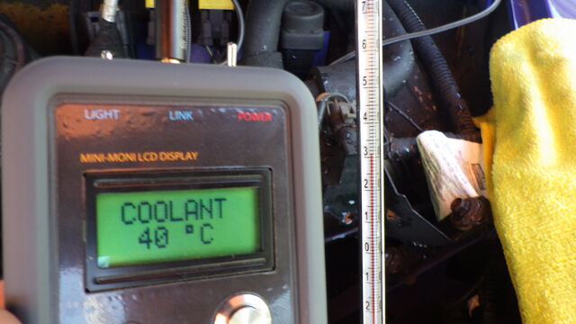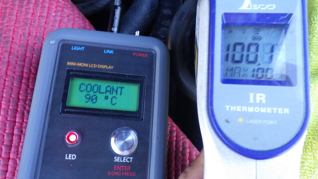 ミニモニ(ECUチェッカ)と温度計をセット。