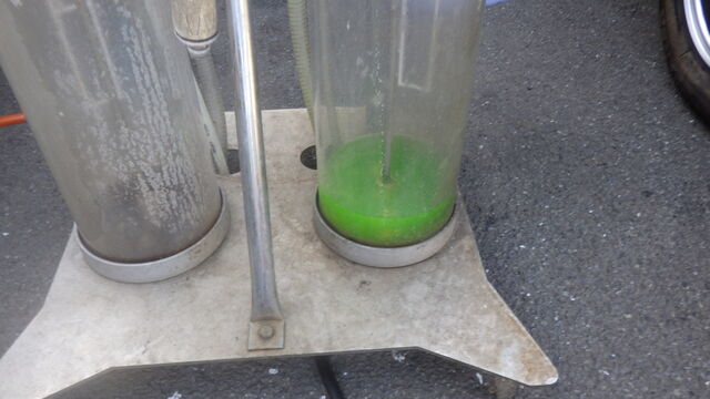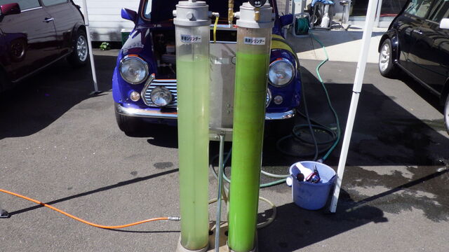 サーモスタット取り付け後再度各センサー点検と洗浄を行いますので洗浄剤と水を入れておきます。