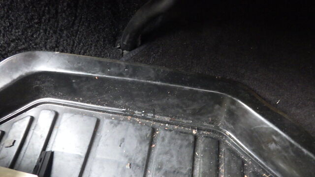 助手席足元に水滴が落ちていますがクーラーが冷えて結露しているからです。