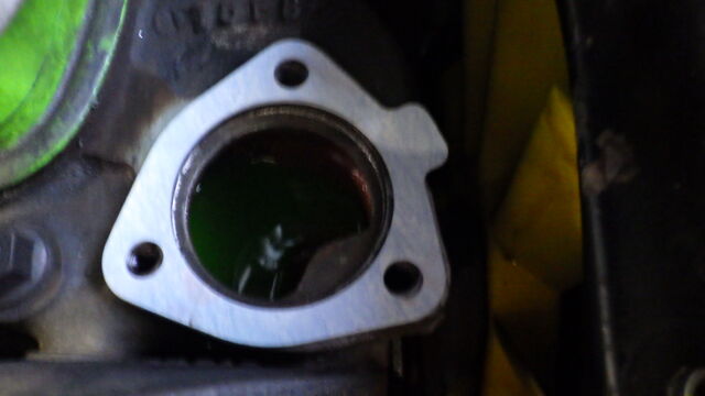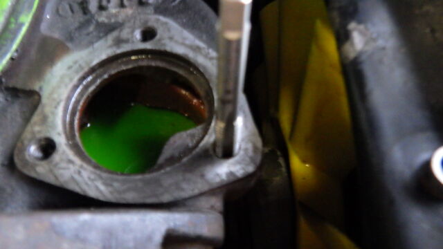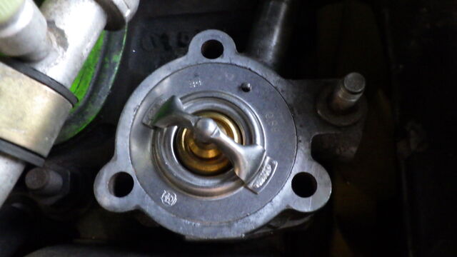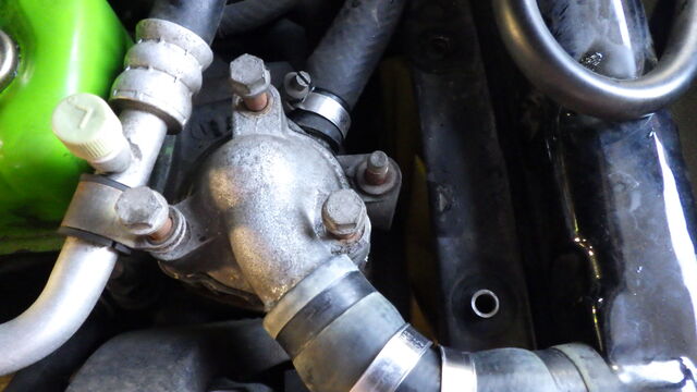 サーモスタットが開いてエンジンから冷却水が流れて来ています。